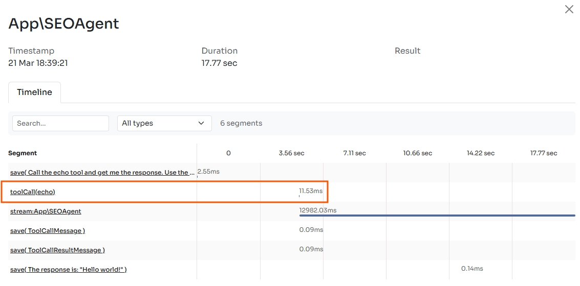 To stay updated about your Agent decision making process, you can connect the Inspector monitoring dashboard to monitor tool selection and execution in real-time.