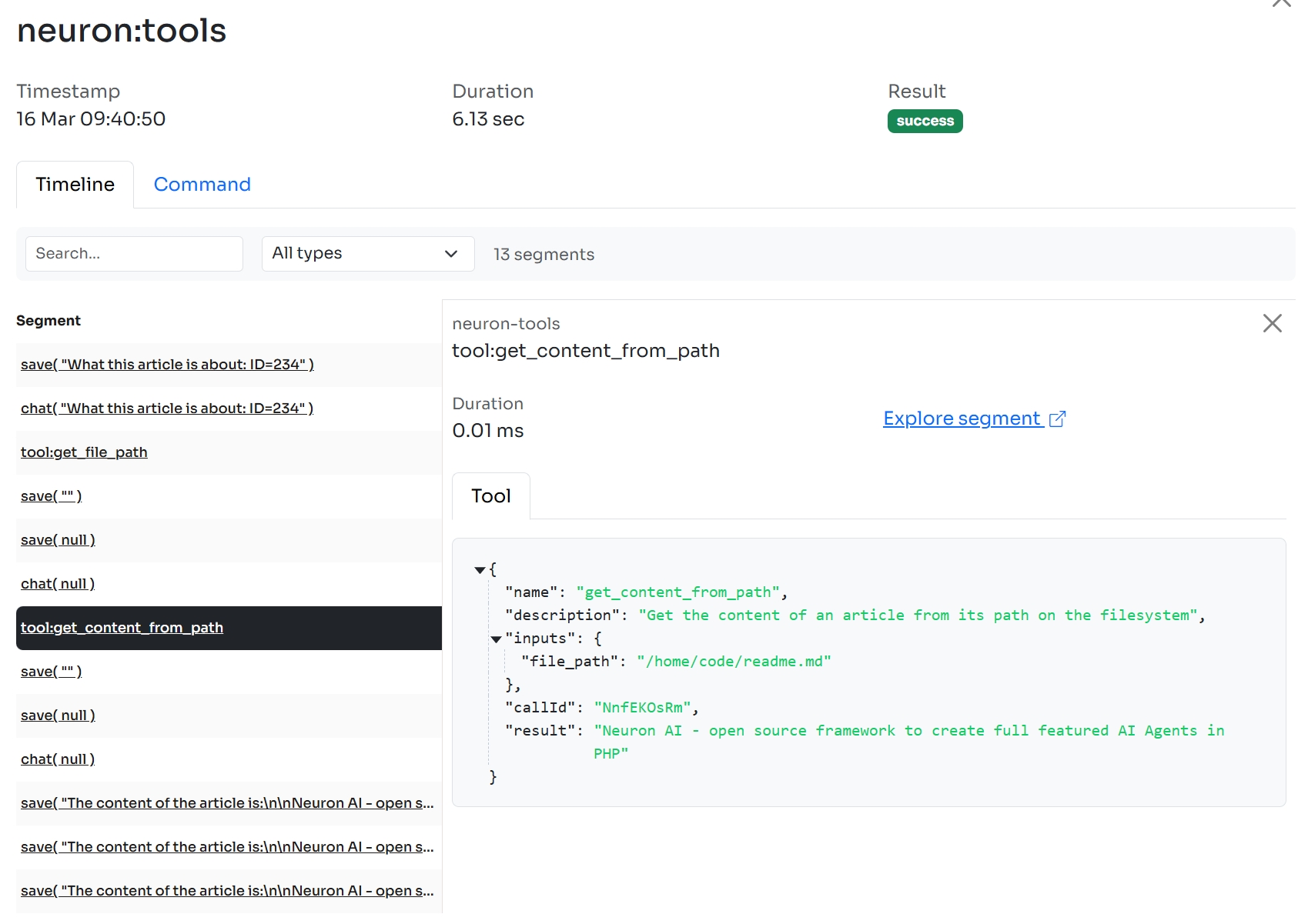 Neuron provides you with these clear and simple APIs and automates all the underlying interactions with the LLM. Once you get the point it can immediately open to a possibility to connect basically everything you want to the Agent. Being able to execute local functions allows you to invoke any external APIs or application components.