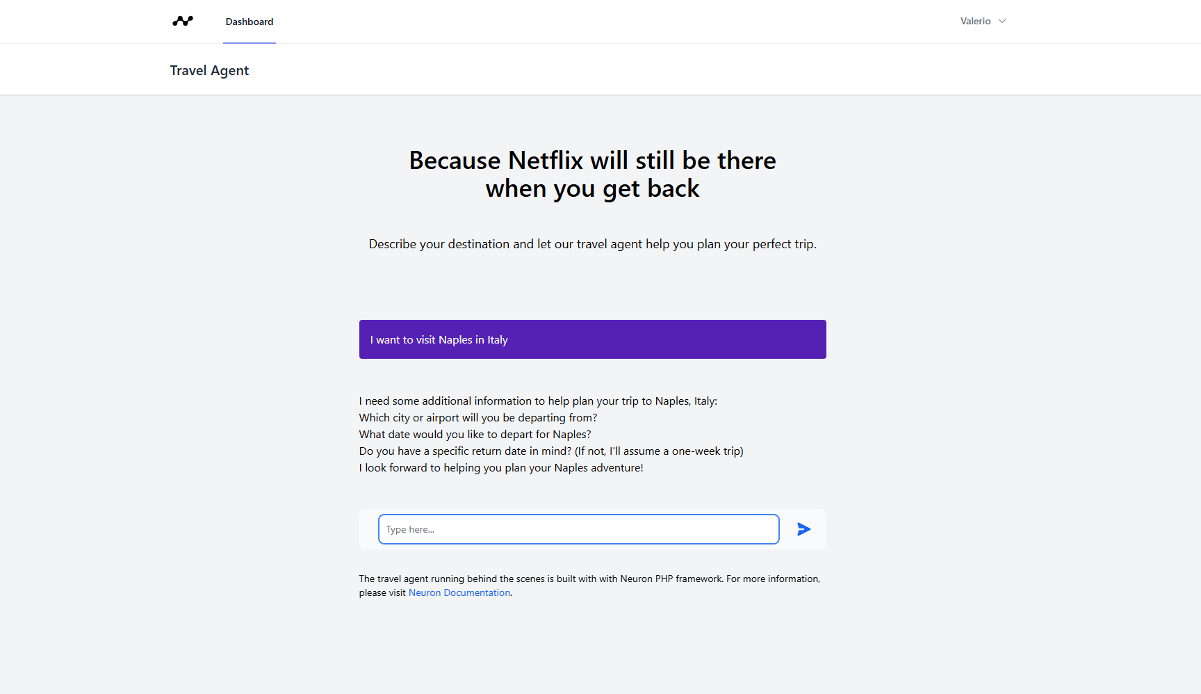 This project demonstrates how to create a tour planner using Neuron PHP framework for agentic applications.